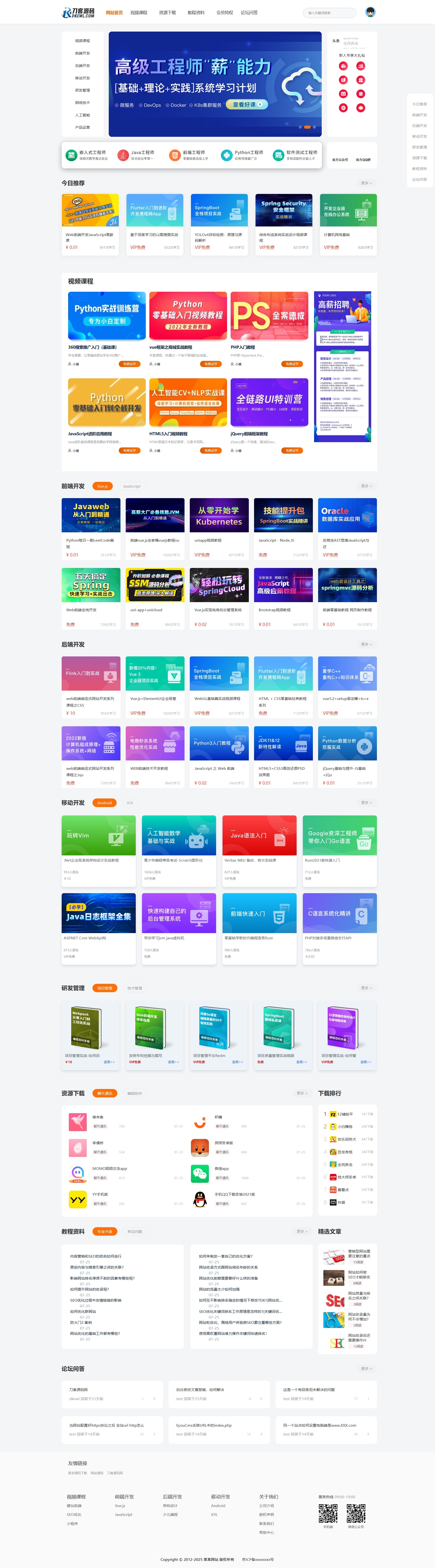 最新知识付费系统网站源码 PC+H5双端显示 适用于视频教程 知识付费 软件下载 网站模板 视频点播 网课系统